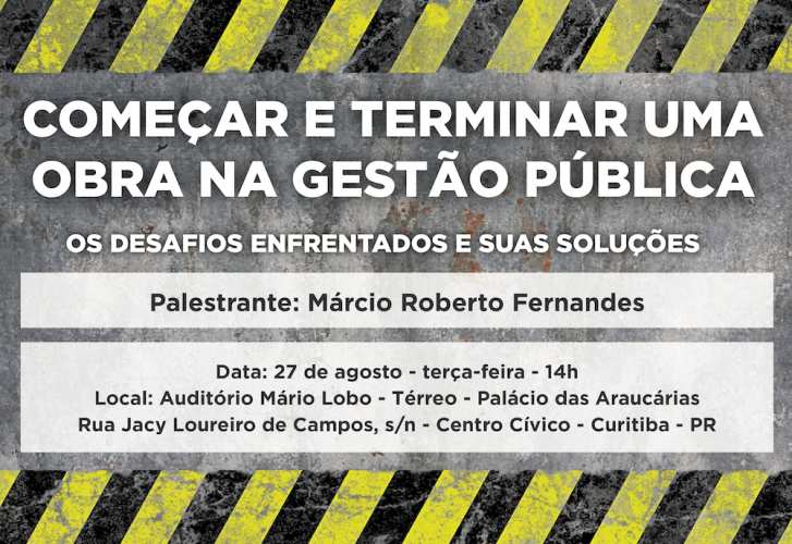 Palestra busca apresentar e debater as principais causas de insucesso em obras realizadas pela gestão pública 23/08/2019 - 10:40